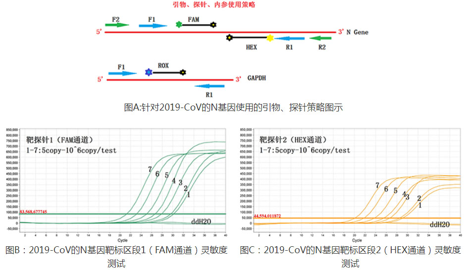 2、以2019-CoV RNA病毒核酸检测为例,应用TaqMan One-Step Nested PCR进行检测。